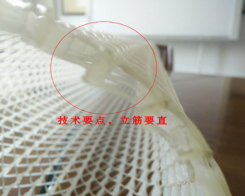 排水網(wǎng)以高密度聚乙烯為原材料,通過(guò)特殊的機(jī)頭擠出肋條,三根肋條按一定間距和角度排列形成有排水導(dǎo)槽的空間結(jié)構(gòu)。三層肋條間形成的排水導(dǎo)槽在較高荷載下不易變形,能夠防止土工織物嵌入土工網(wǎng)芯,確保排水暢通。